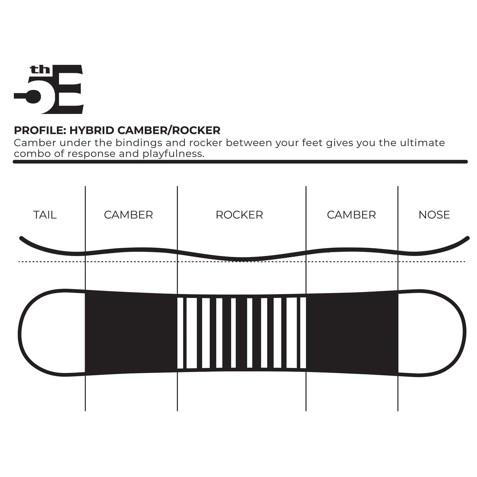 Board Profile: Hybrid Camber/Rocker- Camber under the bindings and rocker between your feet gives you the ultimate combo of response and playfulness
