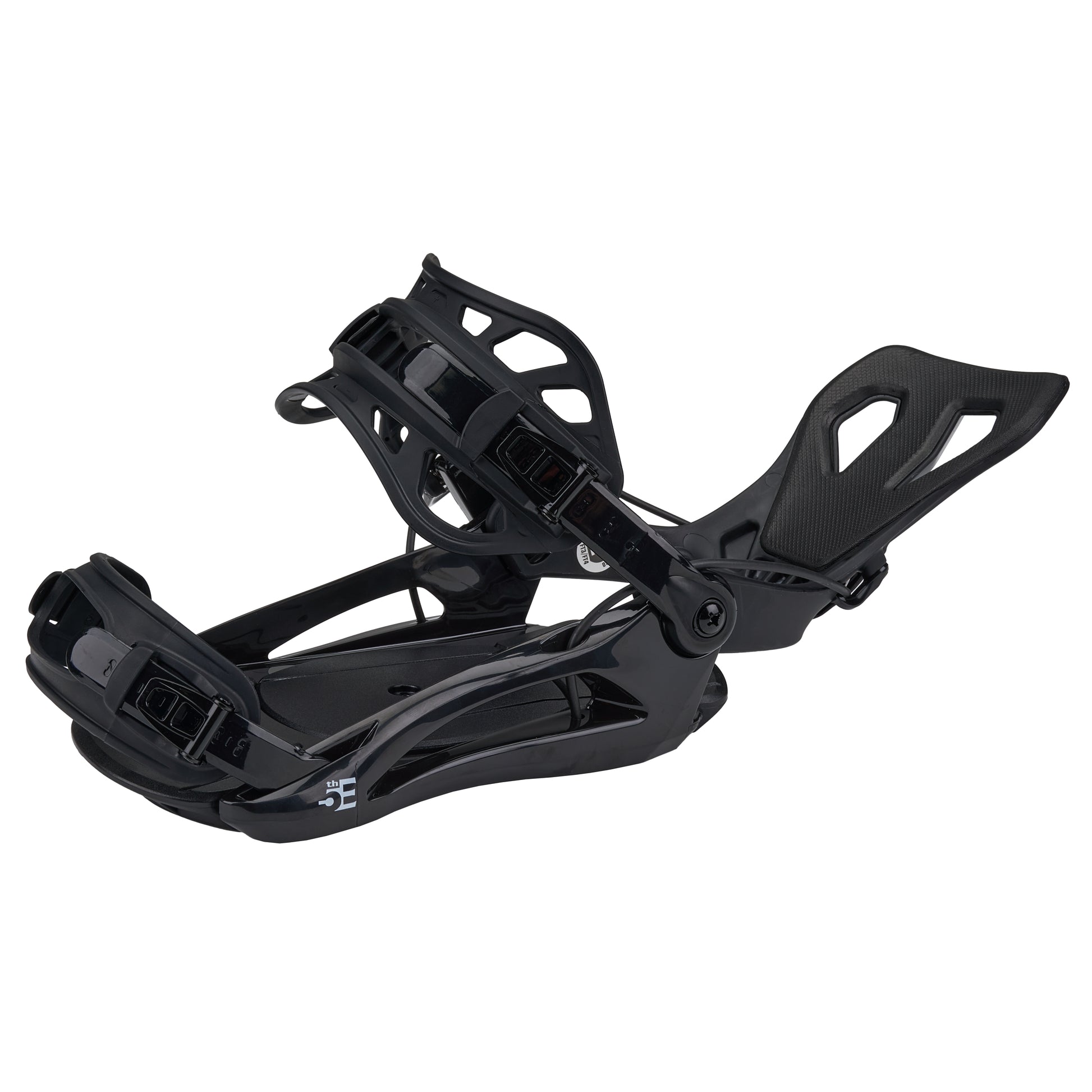 Sick of sitting down to strap in? Slide in and out of your bindings in seconds with our brand new Flash rear entry snowboard binding. Simply pull the lever and the highback down, slide your foot in, lock both levers and your ready to rip. After you're done shredding, pull the lever and highback down and your boot will slide back out with ease. With the Flash you'll spend less time strapping in and more time leaving your buddies in the dust.